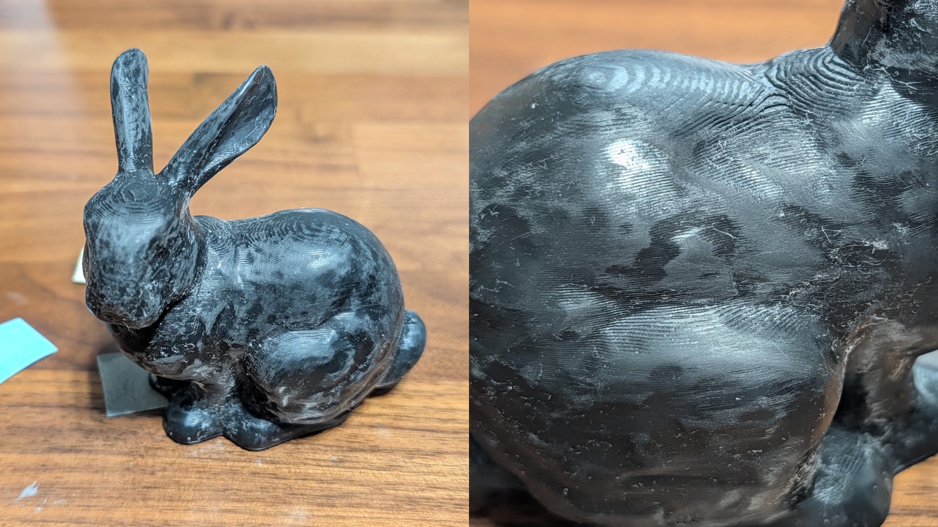 こちら側面の様子。そもそもですが3Dプリントの時点で、気泡なのかなんなのか、点が見られる場合には、削ったり溶かした結果、それが浮いて出てきてしまいます。 これはいかんともしがたい。何とかしたいところではありますが、熱とかで何とかなるのかな。