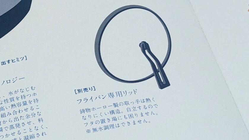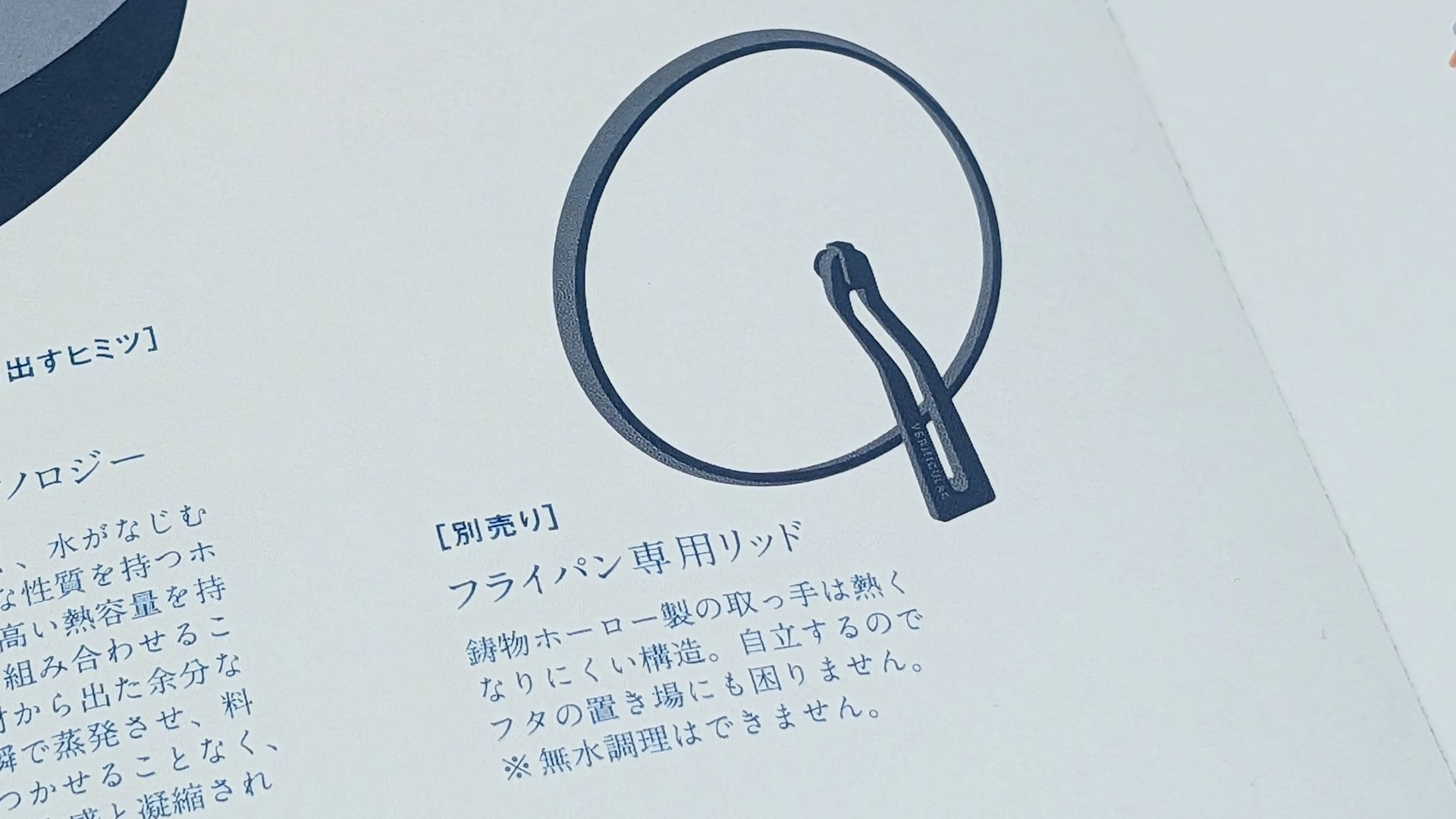 同時に購入した蓋の出来はプロダクトとしては良くできていて、組み合わせって使っていますが、蒸発が気になるときはこっちと組み合わせて使うのが良いかな。 むしろ必須な気がします。火を通すのが早い、というメリットを生かすなら、閉じちゃうのが良いでしょう。