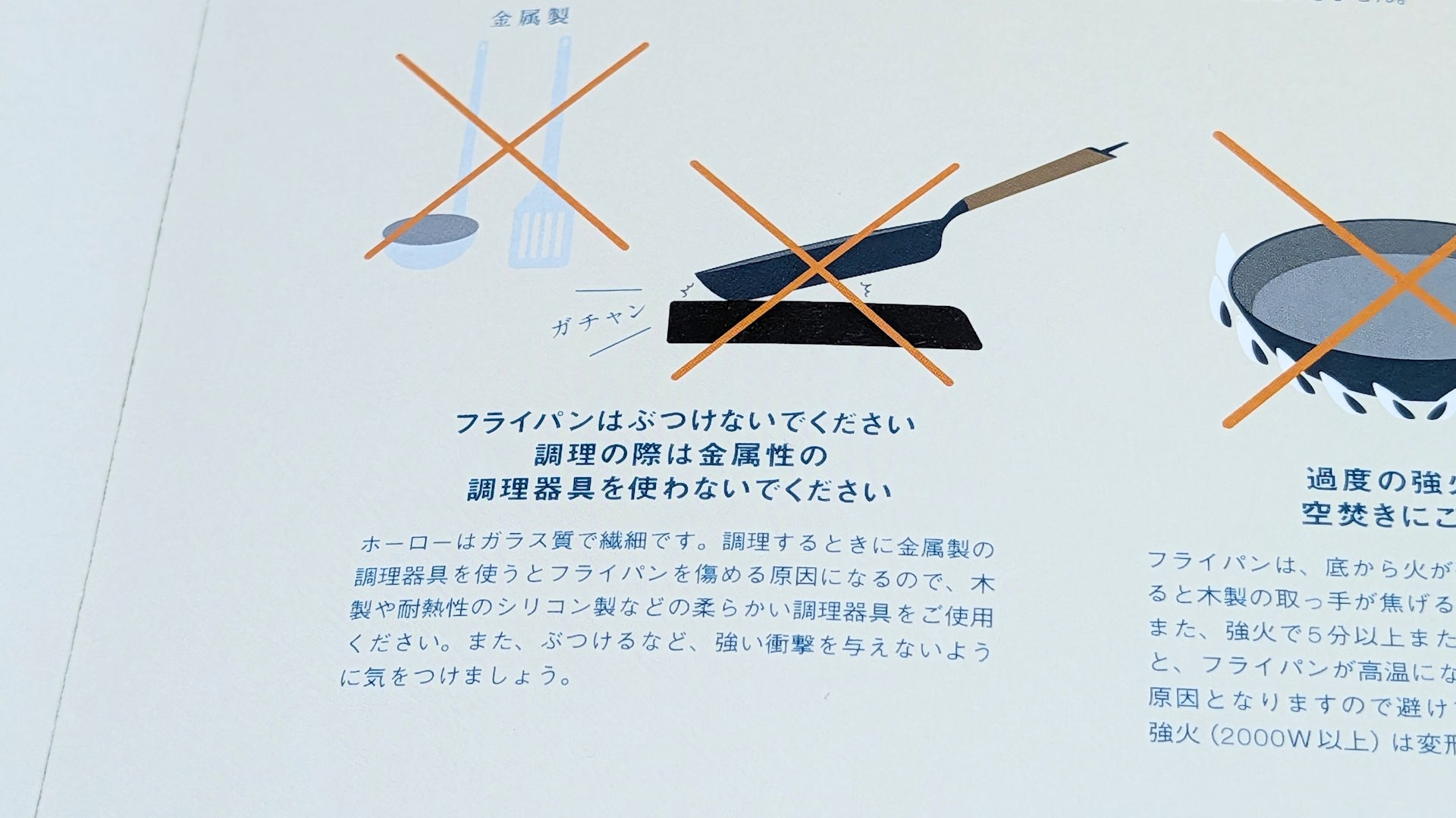 金属製の調理器具類は使わないでね、ぶつけないでね、ってことで多少扱いは繊細かもです。ホーローとは要するにガラス質であるのでさもありなん。