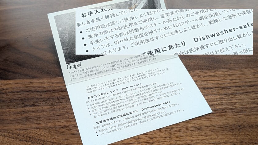 強度と切れ味のために420を採用しています、と書かれていて、至極もっともな採用理由です。結構手早く乾燥させて保管しないとダメですね。