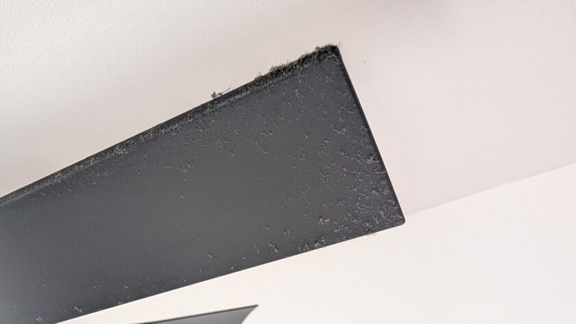 5年間リビングで運用しましたが、その間で埃が積もっていってましたね。ずっと動かしてるわけでもないので、そういうもんだと思います。逆に言えば最低速でも回していれば埃は気にならんかも。