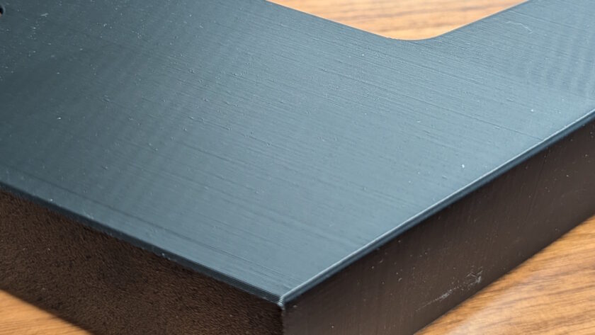 フィラメント同じ条件で、より大きなサイズを0.4mmで印刷したときの表面がこちら。 まぁ確かに乾燥が甘い状態で印刷してしまった感覚はありますが、それでも雲泥の差ですね。