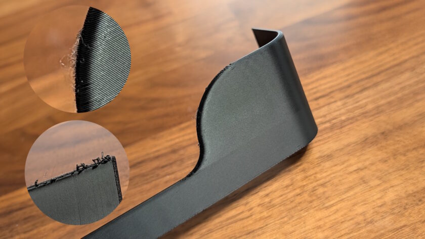 0.8mmや0.4mm大流量ノズルのように、一度に大量のフィラメントを流し込む都合、 乾燥が甘い場合に起こる糸引きや気泡による凹凸が出やすいことが分かりました。