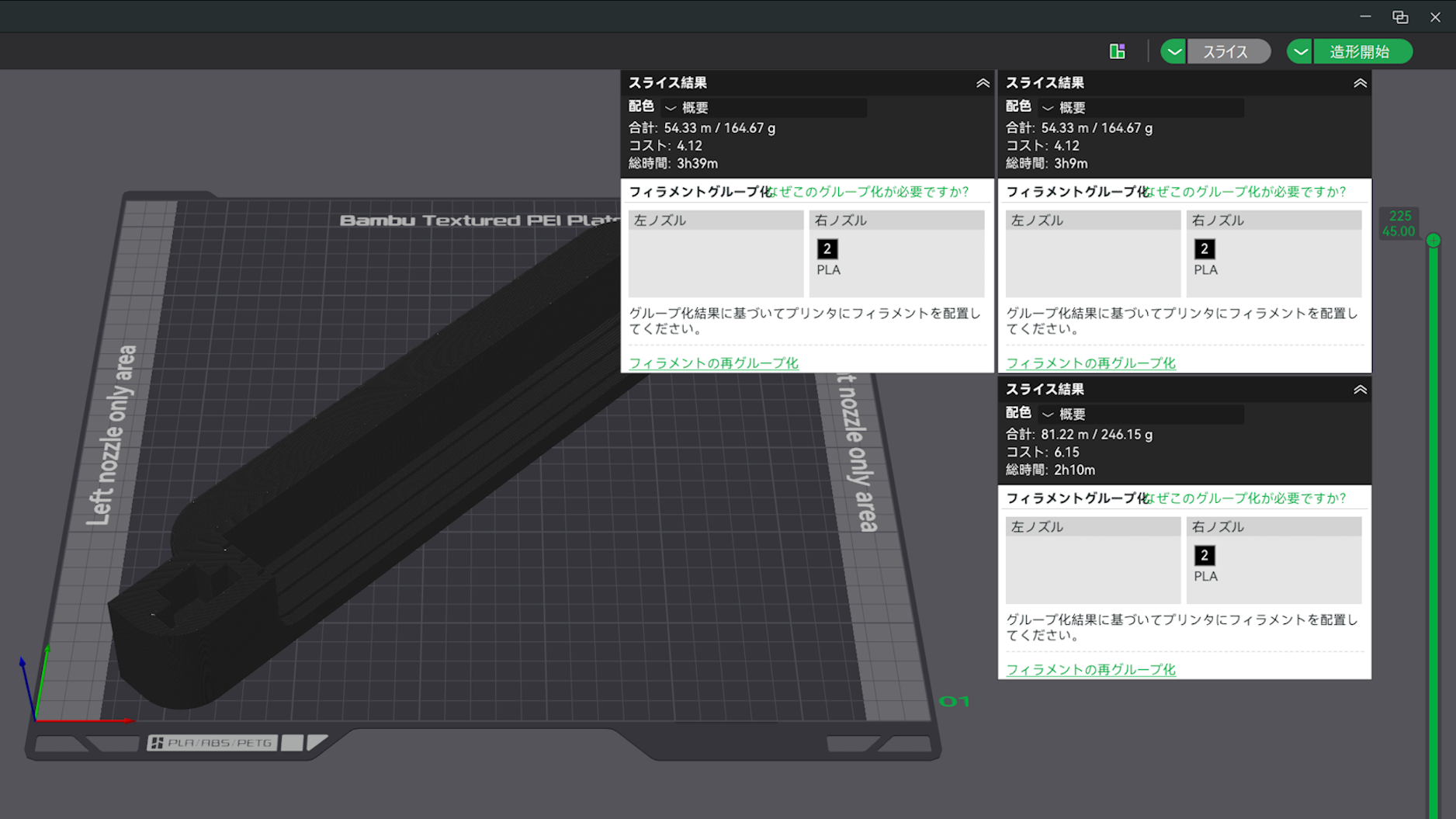 あと後から知ったんですが、推定造形時間はノズルの実物が無くても、 BambuStudioから確認することが出来るので、自分が印刷したい物の時間を確認してからが良いです。切に。